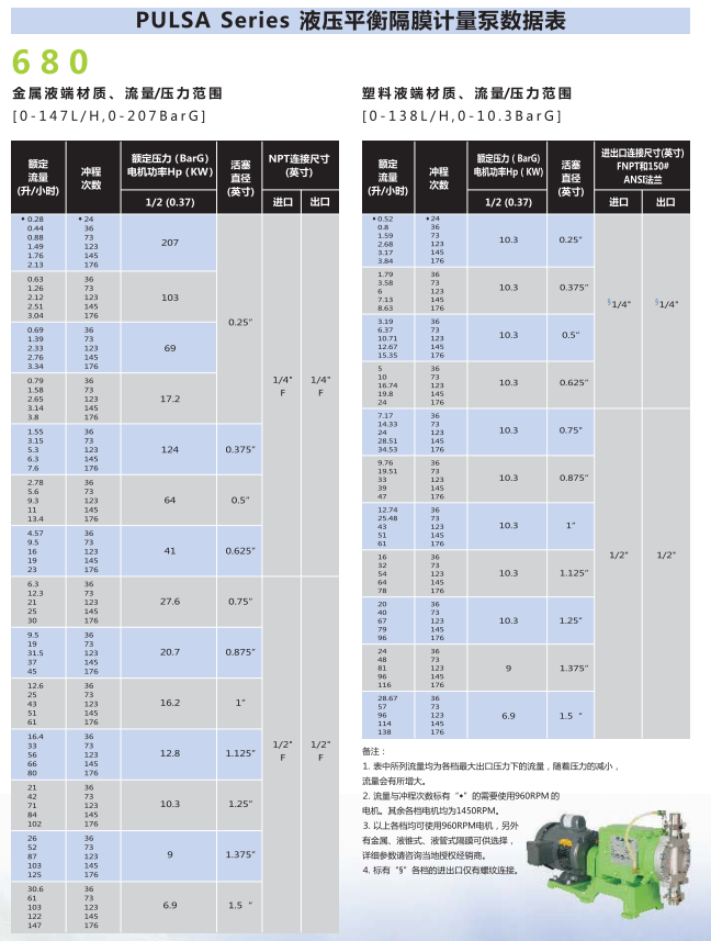 PULSAFEEDER計量泵--PLUSA Series液壓平衡隔膜PULSAFEEDER計量泵數(shù)據(jù)表