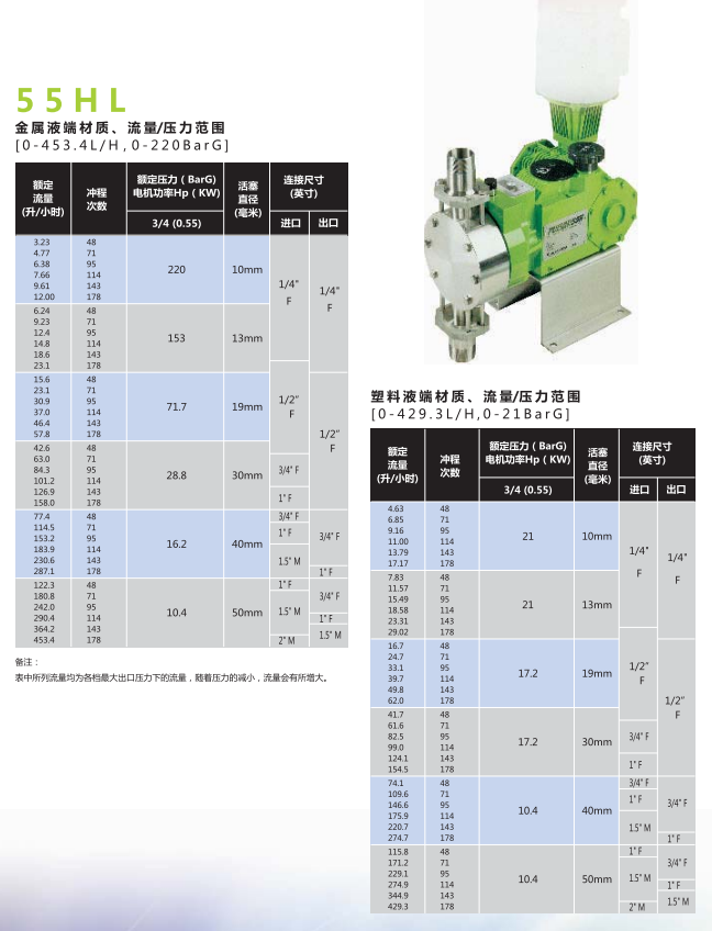 PULSAR系列液壓平衡隔膜計量泵55HL性能特點: