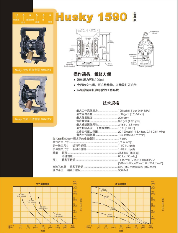 Husky 1590 氣動(dòng)雙隔膜泵 1.5 英寸氣動(dòng)雙隔膜泵