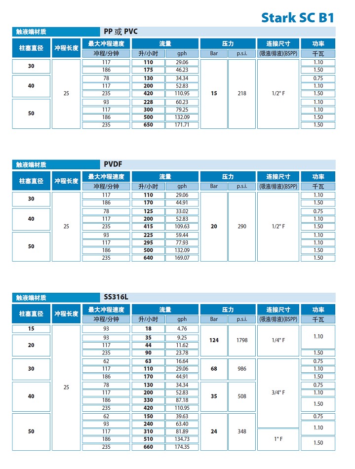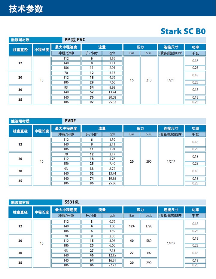 ■ 泵頭材質(zhì):SS316L,PP,PVDF和PVC